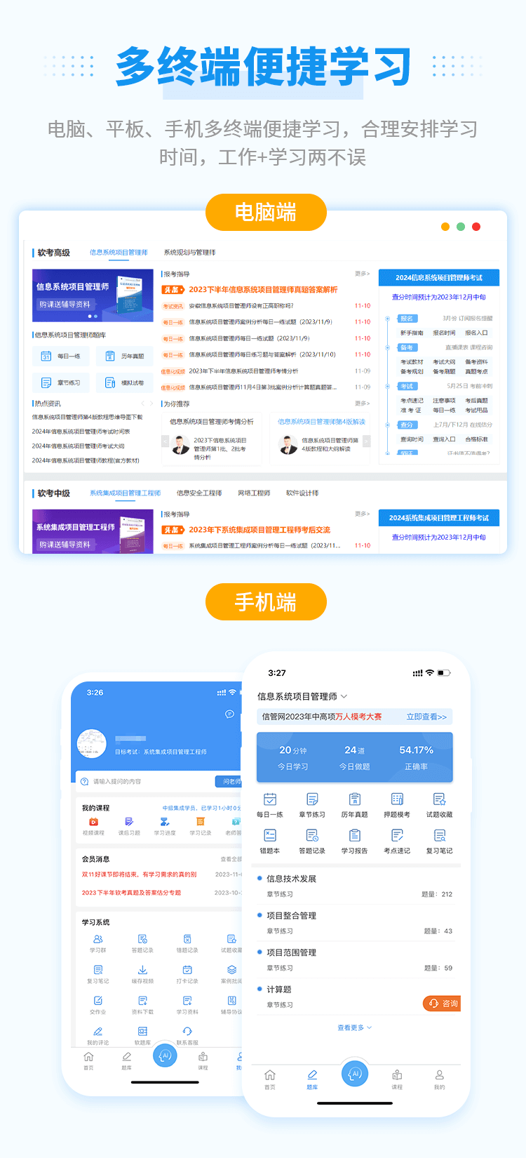 6、電腦+移動端,隨時隨地,想學(xué)就學(xué)。